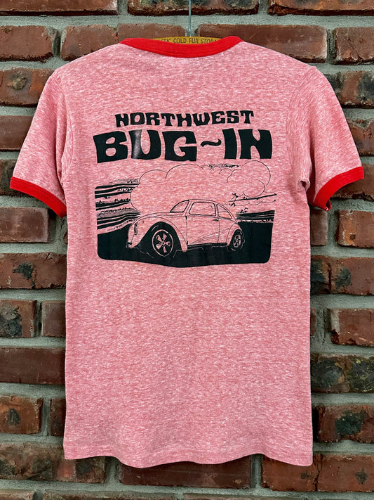 Vintage 80s 1980s NORTHWEST BUG IN Volkswagen VW Beetle Ringer T SHIRT Owners Meet Car Show Rally Automotive Auto Faded Heather Red Hanes Mens