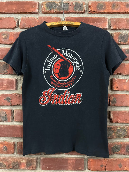 Vintage 70s 1970s INDIAN Motorcycles Dealer T-Shirt Classic Motorcycles of Santa Cruz California Black Hanes Black Hanes Label Mens Extra Small XS 17.25x23.75