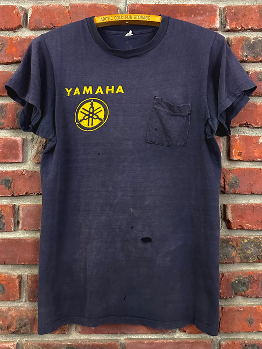 Vintage 60s 1960s YAMAHA Motorcycles Dealer T-Shirt Modern Cycles Kenosha Wisconsin Blue Mens Extra Small XS