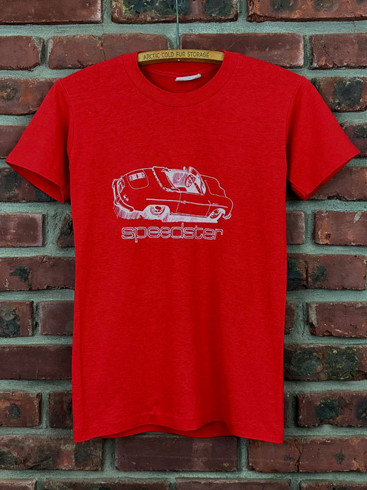 Vintage 80s 1980s PORSCHE 356 Speedster T-Shirt German Car European Automotive Auto Racing Soft Red Stedman Label Mens XS Extra Small