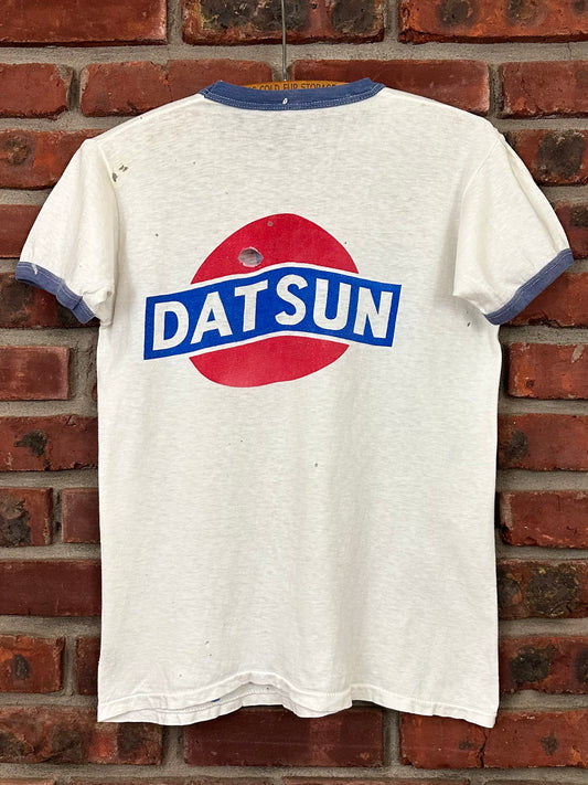 Vintage 70s 1970s DATSUN "All You Need" Ringer T-Shirt Nissan Japan Japanese Car Auto Automotive White Fruit of The Loom Mens Small S