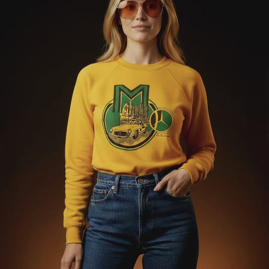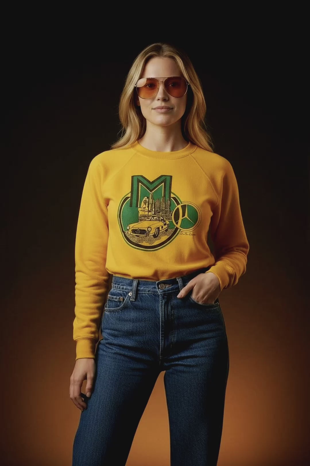 Vintage 70s 1970s MERCEDES-BENZ 300SL Gullwing Raglan Sleeve Sweatshirt Yellow Mens Small S