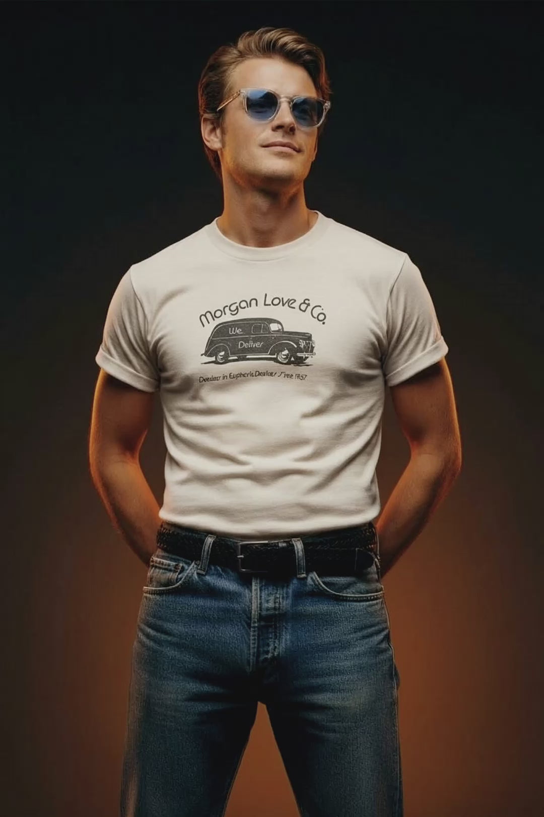 Vintage 70s 1970s MORGAN LOVE & CO T-Shirt Dealers In Euphoric Devices Since 1967 Marijuana Smoking Accessories Bongs Pipes Hippie Stoner Cannabis Weed Thrashed Burnout White Hanes Label Mens Medium M 19x27