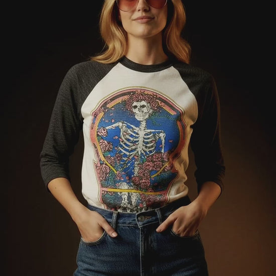 Vintage 80s 1980s 1980 GRATEFUL DEAD Rock Concert Tour T-Shirt Raglan Sleeve Jersey Bertha Rose Garden Alton Kelley Stanley Mouse Paper Thin Burnout Mens Medium M