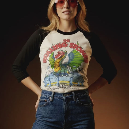 Vintage 80s 1980s 1981 THE ROLLING STONES Tattoo You North American Rock Concert Tour T-Shirt Raglan Sleeve Jersey Sold Out Fall Dates Dragon Stadium Paper Thin Burnout Soft Faded Mens Small S 17.25X26.5