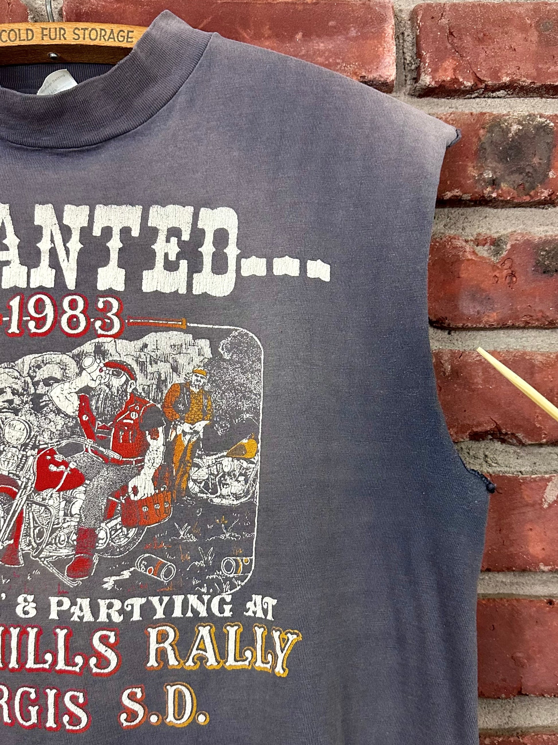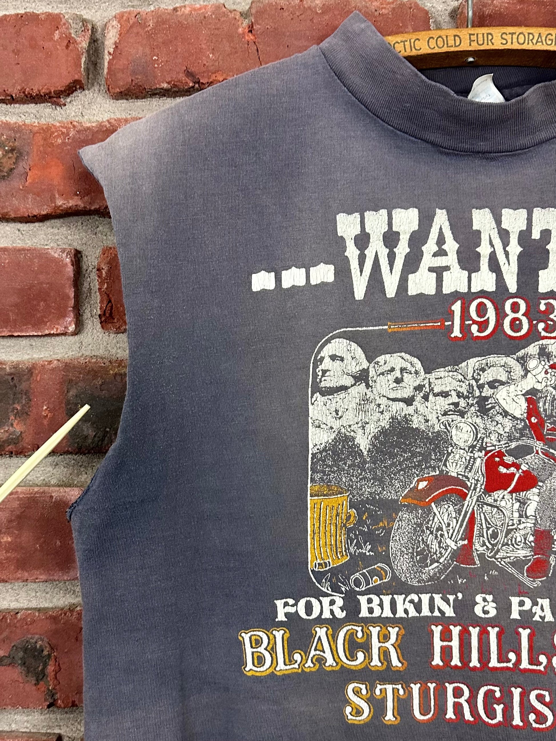Vintage 80s 1980s 1983 HARLEY DAVIDSON Motorcycles Sleeveless Cut Off T-Shirt Sturgis Black Hills Rapid City South Dakota Biker Faded Black Hanes Mens M Medium